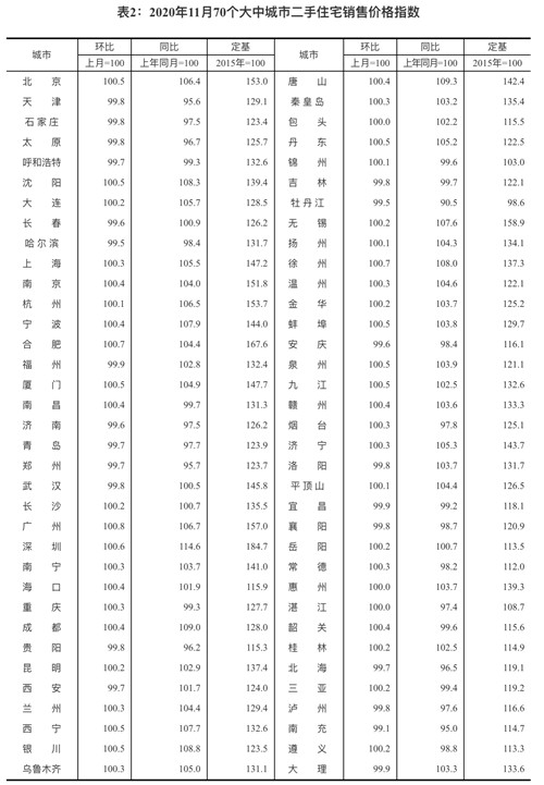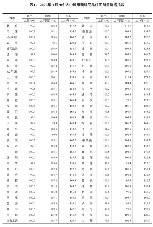 12月14日,國(guó)家統(tǒng)計(jì)局發(fā)布2020年11月份70個(gè)大中城市商品住宅銷售價(jià)格變動(dòng)情況。從全國(guó)70大城市房?jī)r(jià)數(shù)據(jù)看,11月,70個(gè)大中城市中有36個(gè)城市的新建商品住宅價(jià)格上漲,比10月份減少了9個(gè),房?jī)r(jià)上漲個(gè)數(shù)為今年疫情以來(lái)最少的月份;二手房方面,70個(gè)大中城市中房?jī)r(jià)上漲城市有44個(gè),較上月增加5個(gè)。