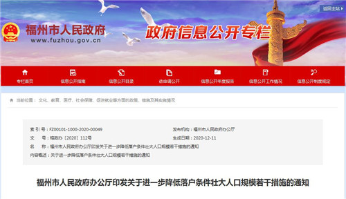 福州市人民政府辦公廳印發(fā)關(guān)于進(jìn)一步降低落戶條件壯大人口規(guī)模若干措施的通知