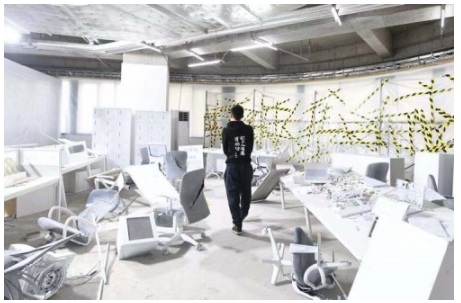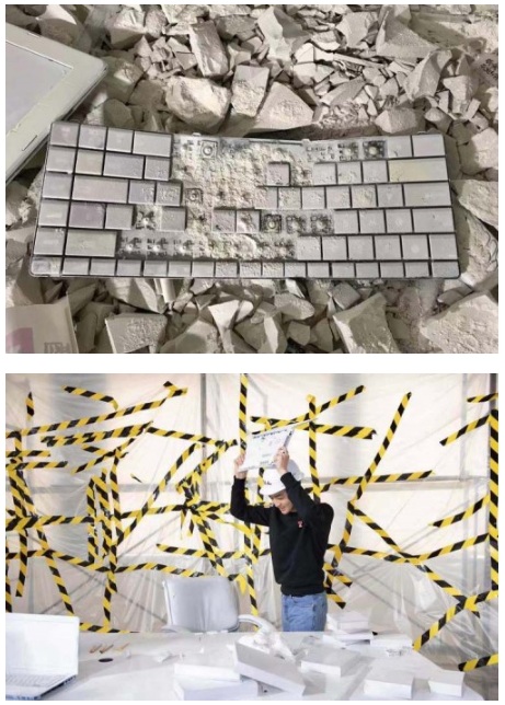 背投電腦屏幕,翻蓋手機等90年代盛行的電子產(chǎn)品,讓人置身一個90年代辦公室的考古現(xiàn)場,這是由藝術(shù)家朱敬一與朱濱共同打造的互動空間“打破傳統(tǒng)”,藝術(shù)家模擬了一個90年代設(shè)計建造但在當下已經(jīng)破敗不堪的辦公室。