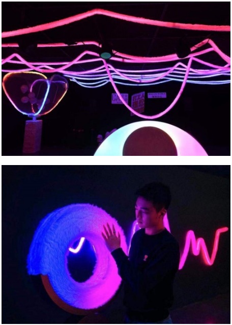 以前的工作空間純粹為了生產(chǎn),《Living Waves》通過聲音與光影的融合,讓參展者感受光影在身體上的流動與穿梭,從環(huán)境中全身心地汲取新靈感,打破思維的圍墻,衍生出無限的創(chuàng)意與巧思,并轉(zhuǎn)化成自己的創(chuàng)造力和問題解決力。