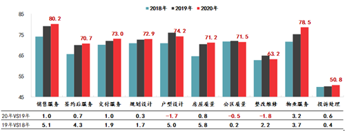 各關(guān)鍵端口滿意度得分年度對比情況 數(shù)據(jù)來源:中指研究院·中指調(diào)查