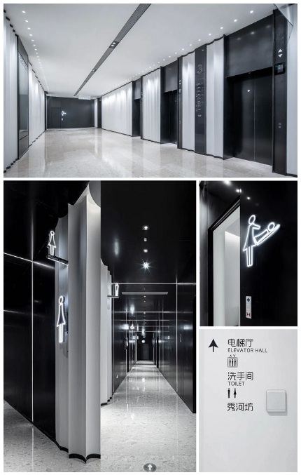 安裝在墻身的標(biāo)志刻意與背景色調(diào)相反,或黑或白,形成強(qiáng)烈的對(duì)比,貫徹內(nèi)裝的設(shè)計(jì)風(fēng)格,完全融入現(xiàn)場(chǎng)的氛圍,營(yíng)造和諧統(tǒng)一的愉悅環(huán)境。