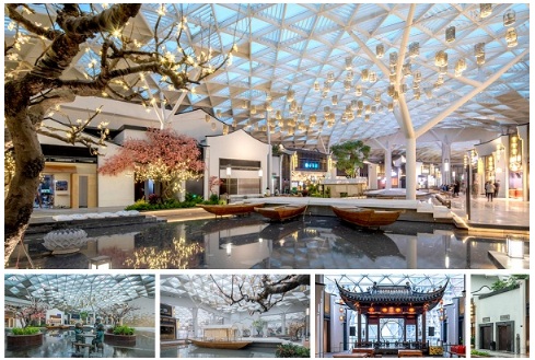 商場(chǎng)的六層是主題內(nèi)街,一條300米長(zhǎng)、國(guó)內(nèi)首創(chuàng)的空中水景商業(yè)長(zhǎng)街“秀河坊” 。 “水街” 設(shè)計(jì)巧妙地融合現(xiàn)代和傳統(tǒng)材料以重塑蘇州著名且歷史悠久的平江路及其風(fēng)貌。