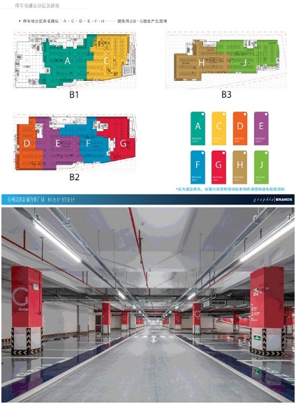 項(xiàng)目擁有3層地下停車庫(kù),配備3000個(gè)停車位。針對(duì)體量特大的停車庫(kù),我們運(yùn)用了顏色和英文字母的分區(qū)策略,配上簡(jiǎn)潔的主題線條圖案,讓用家輕易地辨清方向,在復(fù)雜的停車范圍內(nèi)迅速找到自己的車子和前往計(jì)劃的目的地。