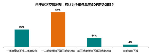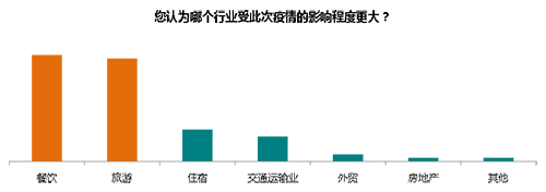 調(diào)查結(jié)果顯示,有57%的專家認(rèn)為我國(guó)GDP一二季度增速將呈現(xiàn)同比下滑的態(tài)勢(shì),三季度整體企穩(wěn),整個(gè)經(jīng)濟(jì)企穩(wěn)的時(shí)間可能會(huì)有所延后。這主要是由于當(dāng)前的經(jīng)濟(jì)結(jié)構(gòu)與2003年發(fā)生了較大的不同。在此次疫情中,餐飲、旅游、住宿、交通運(yùn)輸業(yè)受到的沖擊是最明顯的,特別是餐飲、旅游業(yè)。這些行業(yè)都是生產(chǎn)、生活中的重要服務(wù)者,對(duì)推動(dòng)消費(fèi)至關(guān)重要。目前,我國(guó)的服務(wù)業(yè)比重已經(jīng)從2003年的不足40%,提升到了2019年的54%,疫情的出現(xiàn)無(wú)疑對(duì)拉動(dòng)經(jīng)濟(jì)增長(zhǎng)的核心動(dòng)力產(chǎn)生了重要的影響。