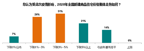 調(diào)查結(jié)果顯示,有86%的專家認(rèn)為受此次疫情影響,2020年全國(guó)新建商品住宅價(jià)格整體走勢(shì)整體將是下跌的,只有14%的專家認(rèn)為與去年基本持平,0%的專家認(rèn)為房?jī)r(jià)會(huì)較去年上漲。因此,雖然房地產(chǎn)市場(chǎng)有望于下半年企穩(wěn)向好,但由于收入各方面的預(yù)期很難短時(shí)間向好,房地產(chǎn)企業(yè)仍應(yīng)在疫情恢復(fù)期加大促銷力度,加快回款,緩解現(xiàn)金流壓力?傮w來(lái)看,未來(lái)一段時(shí)期(至少上半年)供應(yīng)端有加快出貨回籠資金的需求,需求端有投入工作恢復(fù)生產(chǎn)的需要,在沒(méi)有強(qiáng)政策刺激的前提下,整體新房?jī)r(jià)格的走勢(shì)仍缺乏上行動(dòng)力。企業(yè)應(yīng)提前制定疫情過(guò)后的營(yíng)銷策略,我們認(rèn)為疫情過(guò)后會(huì)有企業(yè)準(zhǔn)備一些價(jià)格策略,包括促銷、價(jià)格調(diào)整等,除疫區(qū)之外還有一些三四線城市,由于返鄉(xiāng)置業(yè)受到大的波及,未來(lái)價(jià)格戰(zhàn)會(huì)更激烈。