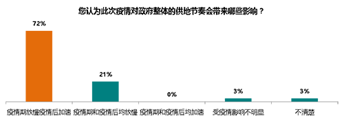 從全年政府供地節(jié)奏來(lái)看,有72%的專家認(rèn)為此次疫情將明顯改變政府整體的供地節(jié)奏,疫情期間放慢供地,疫情控制后加速供地。從以往的推地節(jié)奏來(lái)看,上半年政府供地往往未達(dá)供地計(jì)劃的一半,而下半年集中推地,全年的供地節(jié)奏具有明顯的季節(jié)性特征。此次疫情的出現(xiàn),政府上半年的供地計(jì)劃將大受影響,加上疫情期的減稅、公共財(cái)政支出大幅增長(zhǎng)等情況,疫情期過(guò)后確實(shí)存在加速供地的可能。而從企業(yè)的情況來(lái)看,受此次疫情的影響,有些企業(yè)投資信心是不足的,目前營(yíng)銷放緩,很多快周轉(zhuǎn)企業(yè)可用于拿地的資金就會(huì)比較緊張,因此不得不對(duì)投資的規(guī)模和節(jié)奏進(jìn)行更加審慎的管控。那么,這就給一部分現(xiàn)金流充沛的企業(yè)或融資優(yōu)勢(shì)明顯的企業(yè)提供了增加土地儲(chǔ)備的絕佳機(jī)會(huì)。
