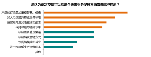 專家調(diào)查結(jié)果顯示,此次疫情可以給房企未來(lái)業(yè)務(wù)發(fā)展方向帶來(lái)的啟示至少包括以下幾個(gè)方面: