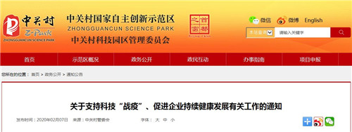 關(guān)于支持科技“戰(zhàn)疫”、促進(jìn)企業(yè)持續(xù)健康發(fā)展有關(guān)工作的通知
