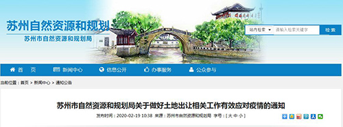蘇州市自然資源和規(guī)劃局關(guān)于做好土地出讓相關(guān)工作有效應(yīng)對疫情的通知
