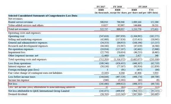 值得注意的是,GPLP犀牛財經(jīng)通過詳細(xì)閱讀其財報獲悉,青客2017財年至2019財年已經(jīng)連續(xù)3年凈虧損,分別虧損2.45億元、4.99億元、4.98億元。3個財年累計凈虧損達(dá)12.42億元。