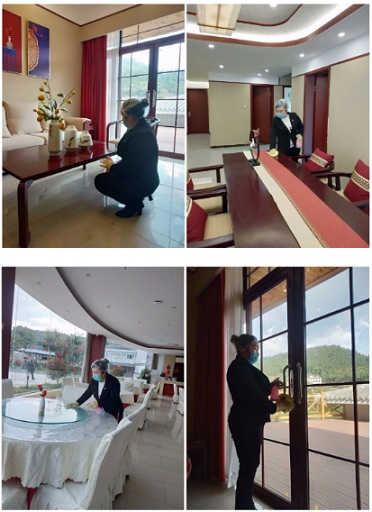 專門配置了體溫槍,所有員工每日上下班測量體溫,檢測結(jié)果記錄在案并上報(bào)。小伙伴生活區(qū)域進(jìn)行全面消毒,所有人上崗前徹底清洗消毒雙手、佩戴口罩、服裝干凈整齊、注意儀容儀表,保持好個人衛(wèi)生。