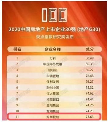 2020中國房地產(chǎn)上市企業(yè)30強(qiáng)榜單(旭輝位列11)