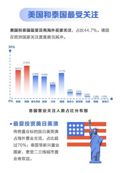 據(jù)鏈家海外2019年相關數(shù)據(jù)顯示,美國、日本和泰國最受海外買家關注,這三個國家關注度占整體海外買家關注接近一半左右。