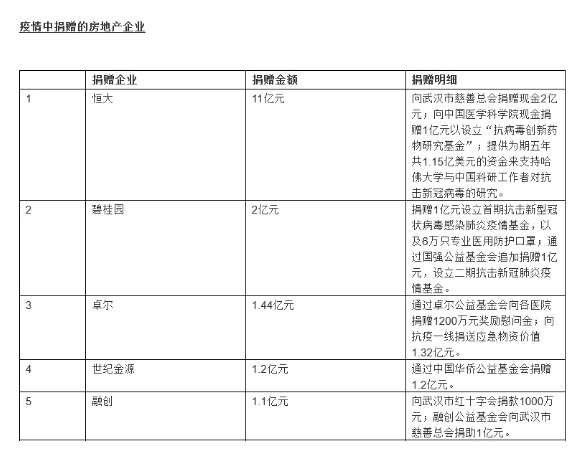 疫情中捐贈(zèng)的房地產(chǎn)企業(yè)前五圖片來(lái)源:胡潤(rùn)研究院