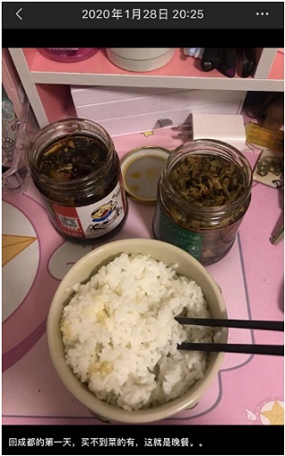 剛開(kāi)工的那陣,整個(gè)成都開(kāi)門(mén)營(yíng)業(yè)的飯店幾乎為零,前一天國(guó)點(diǎn)面包和幾瓶水,第二天帶著出門(mén),就是一整天的“飯”。中絲園平時(shí)就比較安靜,小區(qū)也大。加上疫情這邊就像一個(gè)剛通路,還沒(méi)開(kāi)始招商的新樓盤(pán)。以前帶看中絲園的時(shí)候,宏達(dá)世紀(jì)錦城前面有家羊肉米粉生意火到人行道的桌子都擺不下,但疫情面前也難逃一劫。最開(kāi)始門(mén)上貼的初八開(kāi)門(mén),后來(lái)上面又蓋了一張疫情通知,然后這兩天上面又蓋了張社區(qū)防控公告,通知疊了一層又一層,老板沒(méi)回來(lái),顧客也沒(méi)來(lái)...