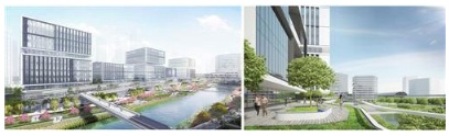 漕河涇趙巷科技綠洲A區(qū)保留青浦原生態(tài)水系,與現(xiàn)代商務(wù)辦公建筑融為一體,擁有寬闊的視野和天然的濱水景觀,營(yíng)造“與水為鄰,愜意辦公”的科技園區(qū)環(huán)境。