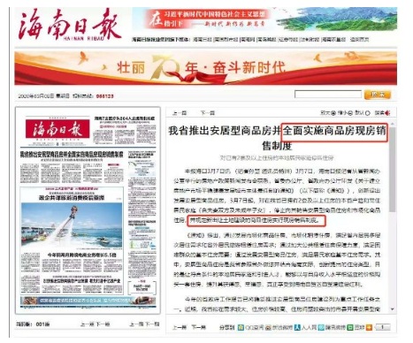 3月7日晚,海南省委辦公廳、省政府辦公廳印發(fā)了《關(guān)于建立房地產(chǎn)市場(chǎng)平穩(wěn)健康發(fā)展城市主體責(zé)任制的通知》(以下簡(jiǎn)稱(chēng)《通知》),提出發(fā)展安居型商品住房,以及實(shí)行本地居民多套住房限購(gòu)政策和商品住房現(xiàn)房銷(xiāo)售制度等。