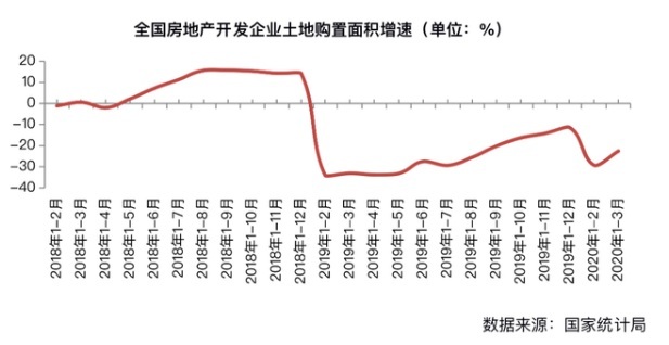 究其原因,一方面房企資金鏈依舊相對緊張,從CRIC監(jiān)測數(shù)據(jù)來看,3月95家典型房企的融資總額為1195.58億元,同比仍降14.5%。另一方面,新開工通常滯后于土地成交兩個季度左右,2019年土地購置面積創(chuàng)十年來新低,這也“拖累”2020年的新開工指標,房企不得不面臨“無地施工”的尷尬境況。