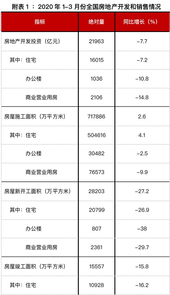 由于各大城市復工復產,3月較2月樓市各項指標表現(xiàn)向好,但仍不及2019年同期,1-3月各項數(shù)據(jù)保持降勢,但整體表現(xiàn)符合預期。全球疫情的不確定,給房地產行業(yè)帶來的負面效應還將延續(xù)。