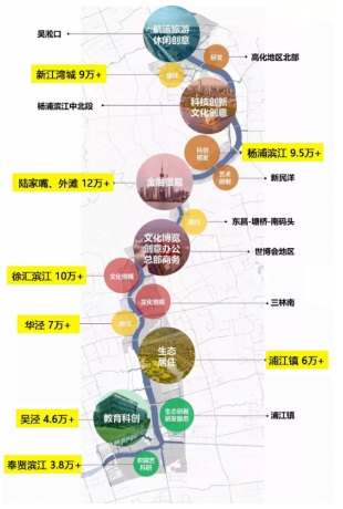 |濱江沿線房價示意圖,地理位置與實際情況存在差異,僅供參考。數(shù)據(jù)來源于2019年鏈家網(wǎng)。