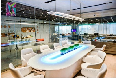 在創(chuàng)意接待區(qū),來賓們可以通過沙盤和多媒體音影設(shè)備全方位了解項目信息;移步閱談辦公空間,則可以在多場景辦公需求中自由切換,全方位感受未來5.0辦公體驗;在閱讀休閑空間,則可以手捧咖啡,邂逅一本書籍沉淀自我……未來辦公與生活,在此得以打破藩籬,融為一體。