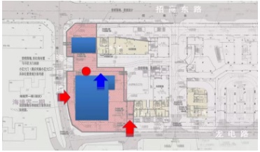 項目啟動時,體驗中心整體建筑改造有一個問題:它有兩個入口,一個是常規(guī)入口,一個是地下車庫經(jīng)電梯廳到達的入口,而兩個入口相距幾十米,不在同一個方向,無法實現(xiàn)常規(guī)售樓處的流線處理。