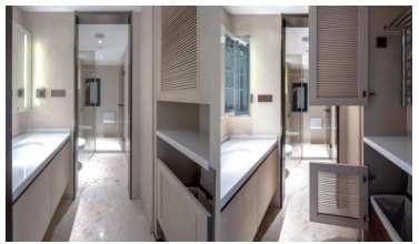 再比如說,衛(wèi)生間除了大家都知道的干濕分區(qū),我們也要考慮到毛巾的干燥、臟衣服的放置、洗手臺上化妝品的收納。此外,坐便器旁邊配高壓水槍,紙巾盒的處理等,同樣需要設計師花心思研究。