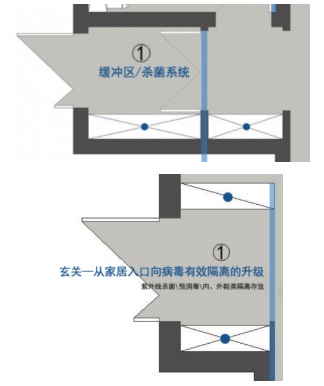 大家在疫情中,都經(jīng)歷了居家隔離,出行隔離,殺菌消毒等過程。所以基于此,志遠(yuǎn)在綜合了小區(qū)隔離等手段,把大的隔離方式變化為更具體的實(shí)用手段。如何做到把病毒隔離到門外即成為了志遠(yuǎn)設(shè)計(jì)師思考的第一個(gè)問題。門是我們進(jìn)入居室的第一道安全系統(tǒng),也是最重要的安全系統(tǒng)。曾經(jīng)我們用鐵門+木門的方式做安全防盜,再到后來的防盜門或指紋鎖技術(shù),但更多的是取到治安防范的作用,而病毒是看不到也摸不到的,我們?cè)撊绾稳シ乐共《镜娜肭植攀潜敬斡懻撽P(guān)鍵點(diǎn)。志遠(yuǎn)研發(fā)團(tuán)隊(duì)通過對(duì)社區(qū)隔離方式的觀察,結(jié)合家居設(shè)計(jì)的功能特征發(fā)現(xiàn),如果把進(jìn)門的玄關(guān)進(jìn)行改造是否能對(duì)戶外病毒形成一個(gè)有效的隔離地帶呢?帶著這個(gè)想法,志遠(yuǎn)研發(fā)團(tuán)隊(duì)經(jīng)過不斷地設(shè)備調(diào)研分析、施工工藝分析、可行性運(yùn)用論證,加以無數(shù)次的線上討論溝通,終于制定出一套玄關(guān)隔離殺菌系統(tǒng)。(如下圖)