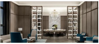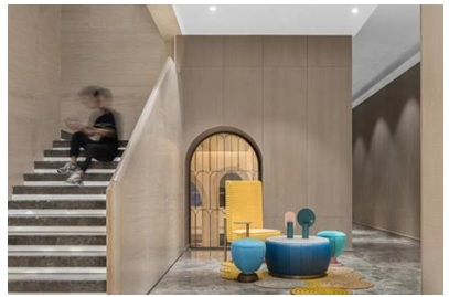 建筑風(fēng)格以當(dāng)代的審美視角重新詮釋ArtDeco美學(xué),并延續(xù)至室內(nèi)。設(shè)計(jì)在理性的、系統(tǒng)性的洞察下,避免過(guò)于復(fù)雜的肌理和裝飾,靈活運(yùn)用簡(jiǎn)化的手法,在保留優(yōu)雅恢弘的雕塑感的同時(shí),令空間整體威而不嚴(yán),美且多情。