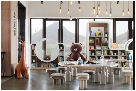 基于東原產(chǎn)品的三大板塊定位,則靈規(guī)劃了咖啡烘焙、閱讀沙龍、親子娛樂等多元主題空間。在視覺美感與部品選用上,他們根據(jù)對用戶體驗(yàn)的研究,采用了自然環(huán)保、趣致實(shí)用、美好明媚的材料與形制。就座區(qū)的設(shè)計在保證自由交談的同時,又有相對平衡的圍合度與私密性,以便參與活動或個人休息狀態(tài)的切換自如。