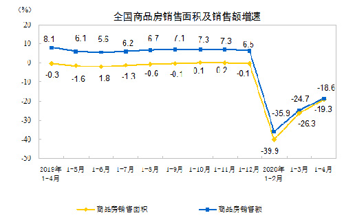 5月15日國(guó)家統(tǒng)計(jì)局發(fā)布2020年1—4月份全國(guó)房地產(chǎn)開(kāi)發(fā)投資和銷售情況。