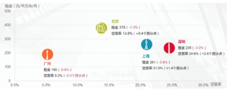 其中深圳的寫字樓空置率更躍居一線城市首位。另?yè)?jù)戴德梁行數(shù)據(jù)顯示,一季度深圳寫字樓空置率為24.6%,環(huán)比上升2.6%,遠(yuǎn)高于上?罩寐21%,北京13.8%,廣州5.2%。
