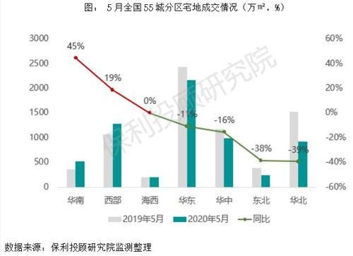 華南區(qū)域:合計(jì)成交建面522萬(wàn)㎡,同比上升45%。廣州出現(xiàn)明顯放量,單月成交量215萬(wàn)㎡(2019年月均成交90萬(wàn)㎡),主要集中在增城、黃埔、番禺等近遠(yuǎn)郊區(qū)域,其中增城占53%;佛山、珠海同比增幅超30%,5月成交建面分別為150萬(wàn)㎡和17萬(wàn)㎡。