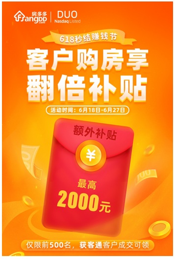 6月5日起,房多多“618省錢(qián)購(gòu)房節(jié)”活動(dòng)在全國(guó)近百座城市拉開(kāi)帷幕,以新房補(bǔ)貼為切入點(diǎn),平臺(tái)提供最高20000元購(gòu)房補(bǔ)貼,預(yù)計(jì)全月將發(fā)放高達(dá)一億的購(gòu)房補(bǔ)貼券,回饋置業(yè)消費(fèi)者。