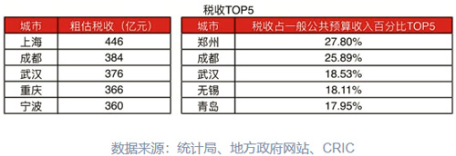 但從稅收占一般公共預(yù)算收入百分比來看,鄭州最高約為27.8%,成都與武漢次之,分別為25.89%與18.53%。