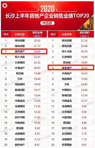 隨著江山悅、松雅院等項(xiàng)目發(fā)力,建發(fā)房產(chǎn)長(zhǎng)沙公司業(yè)績(jī)持續(xù)增長(zhǎng)。據(jù)【中國(guó)指數(shù)研究院】2020年長(zhǎng)沙上半年房地產(chǎn)企業(yè)銷(xiāo)售業(yè)績(jī)榜單,建發(fā)房產(chǎn)長(zhǎng)沙公司銷(xiāo)售總額位居第三,總面積位居第六。