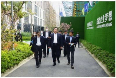 在調(diào)研中,謝光平向程向民、李謙等一行詳細(xì)介紹了派米雷·佘山智地項目的規(guī)劃、定位、招商運營等情況。程向民充分肯定了項目的規(guī)劃和階段招商成果,并鼓勵派米雷集團放眼全球,適應(yīng)百年大變局,聚焦生物醫(yī)藥產(chǎn)業(yè)的同時要擴寬招商思路,將國際高端科技企業(yè)導(dǎo)入園區(qū),與政府一起把“松江制造”打出去。程向民同時表示,派米雷集團要發(fā)揮平臺型企業(yè)的作用,注重全產(chǎn)業(yè)鏈發(fā)展,直面疫情帶來的機遇和挑戰(zhàn),繼續(xù)聚焦G60政策導(dǎo)向、學(xué)習(xí)“6+X”產(chǎn)業(yè)政策,運用基金平臺、VC/PE平臺等,把建設(shè)、招商、運營工作做到更好,爭當(dāng)松江區(qū)的示范代表,起好帶頭作用。