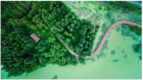真山真水、萬頃密林,清晨或者黃昏,湖面上薄霧如紗,水杉新綠蔥蘢,站在自家陽臺上,就能看云卷云舒;或者下樓步行幾分鐘,就能在綠茵環(huán)伺的家門口來一場生態(tài)慢跑。