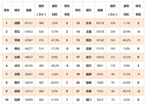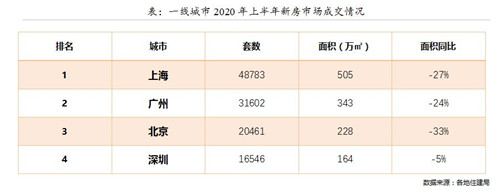 表:二線城市2020年上半年新房市場成交情況(與去年同期計算排名變化)