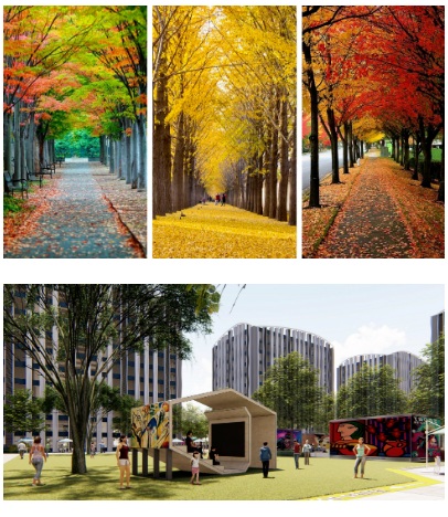 植物在風(fēng)景中的意義,是空間效果也是生長肌理。禪意、月季、櫻花、海棠、紫薇、銀杏、法桐、楓林……北京LOGO丨3.3未來社區(qū),將不同風(fēng)格的植物分主題進(jìn)行街區(qū)規(guī)劃,哪怕你正好是個熱愛植物想過隱居山林的年輕人,也能在這里找到屬于自己的那幅最佳風(fēng)景畫。