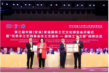 6月14日,世界手工藝理事會正式發(fā)函確認安溪縣獲評“世界藤鐵工藝之都”稱號,并于8月20日由世界手工藝理事會及亞太地區(qū)理事會、中國工藝美術協(xié)會、安溪縣人民政府主辦并召開新聞發(fā)布會,正式宣布這一喜訊。