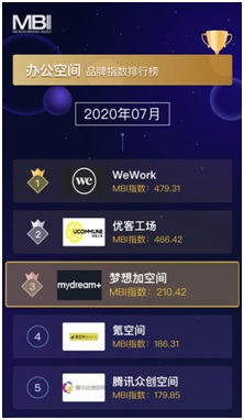 8月26日,邁點研究院發(fā)布最新一期《辦公空間品牌發(fā)展報告》。報告指出,夢想加穩(wěn)居辦公空間品牌影響力榜單前三,其中,搜索指數(shù)單維度排名為榜單首位。
