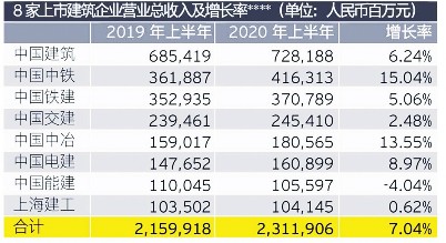 盡管營業(yè)收入實現(xiàn)穩(wěn)步增長,但上半年8家上市建筑企業(yè)的凈利潤數(shù)據(jù)則喜憂參半。