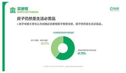 鏈家日前發(fā)布的《2020大學(xué)生職住觀報(bào)告》(以下簡(jiǎn)稱(chēng)“報(bào)告”)顯示,高于半數(shù)的大學(xué)生認(rèn)為結(jié)婚必須要有房子才有安全感,房子仍然是生活必需品。