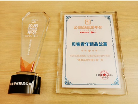 9月23日,貝客又在2020重啟增長·公寓創(chuàng)業(yè)家年會中榮獲了“最具品牌價值公寓”獎,彰顯強勁品牌實力。