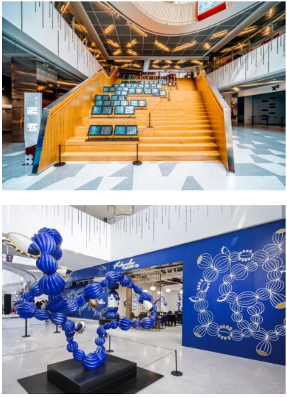 上海廣場的煥新更迭,并未只停留在消費(fèi)層面的滿足,創(chuàng)新地打造“無邊界的藝術(shù)消費(fèi)空間”的商業(yè)模式,先是在設(shè)計理念上以建筑語言對“無邊界”的概念進(jìn)行強(qiáng)化,將上海廣場作為“城市延伸”的基調(diào),宛若城市之窗的多層高門頭,結(jié)合大面積的玻璃幕墻外立面,讓室內(nèi)空間自然無邊界地延展成城市公共功能的互動平臺。