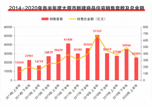 另據(jù)樓查查統(tǒng)計(jì)數(shù)據(jù)顯示,2020年上半年太原市新建住宅出現(xiàn)了供應(yīng)面積、成交面積、銷售套數(shù)均同比下降情況。2020年上半年太原市新建商品住宅供應(yīng)面積227.2萬平方米,環(huán)比下降61%,同比下降41%;成交面積312.4萬平方米,環(huán)比下降28%,同比下降7%。
