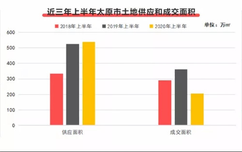 太原商品房銷售市場的低迷反映在土地市場是成交縮水。據(jù)樓查查統(tǒng)計(jì)數(shù)據(jù)顯示,近3年,太原市土地市場供應(yīng)量呈現(xiàn)逐步增加態(tài)勢。2020年上半年太原市土地供應(yīng)84宗,面積536.6萬平方米,較去年同期增長2%;但土地成交46宗,面積207萬平方米,較去年同期減少43%。