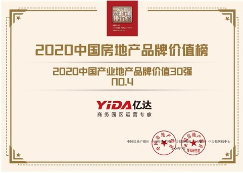 大會發(fā)布了2020中國房地產(chǎn)品牌價值榜,億達中國憑借22年產(chǎn)城融合發(fā)展經(jīng)驗及強勁的品牌影響力,榮膺2020中國房地產(chǎn)品牌價值TOP100,位列55;2020中國產(chǎn)業(yè)地產(chǎn)品牌價值TOP30,位列第4。